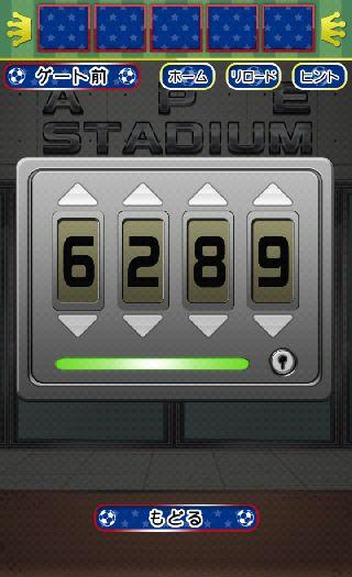 脱出ゲーム サッカースタジアムからの脱出 無料 0 評価する 送信する ESC-APE 1日目 スタンドを拡大。 旗を見ていると、『6、2、8、9』の数字が順に表示される。 確認したらゲート前へ。 扉の装置を拡大して、『6289』に合わせる。 扉を開ける。 1日目 2日目 3日目 4日目 5日目 6日目 7日目 8日目 9日目 10日目