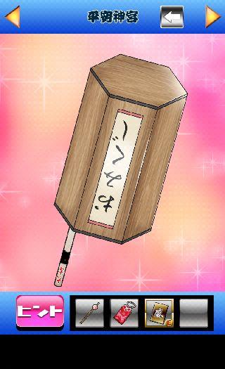 右に移動して、看板の上の鶯に「鶯ボーロ」を使う。