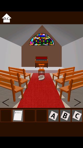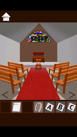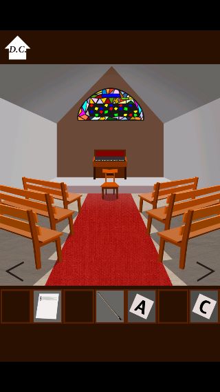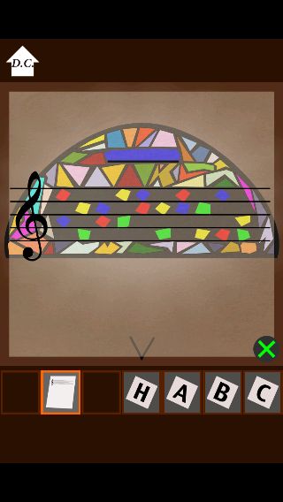 ステンドグラスを拡大して、所持品の「楽譜」を調べる。