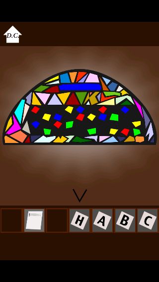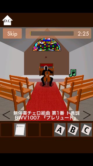 ステンドグラスの色の配置はプレイごとにランダムに変わり、今回は題名の部分が『青』なので青いガラスの部分を音符として読み取っていく。