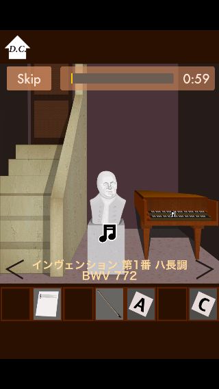 中央の□のラインに、4枚の「プレート」を『B、A、C、H(バッハ)』の順ではめてクリア。