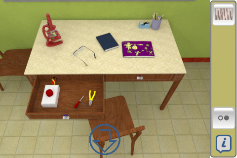 Room Escape Games: in 'Echo Room' 無料 0 評価する 送信する 攻略その2 ぬいぐるみから「メガネ」を入手。 船の模型の右から「ダイヤ」を入手。 サッカーボールを持ち上げるとメモがあるが、直接的なヒントではなく謎解きの上で重要なものが羅列してある。 テーブルの前に移動。 テーブルを拡大。 「青いカギ」で左の引き出しを開ける。 左の機械のスイッチを押すと、テーブルの顕微鏡に何かが起こる。 引き出しの中からマーブル模様の「タオル」を入手。 テーブルの上から「セロテープ」を入手。 顕微鏡を拡大する。 攻略その1 攻略その2 攻略その3 攻略その4 攻略その5 攻略その6