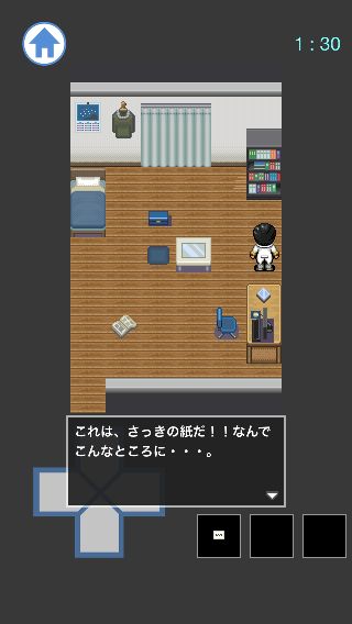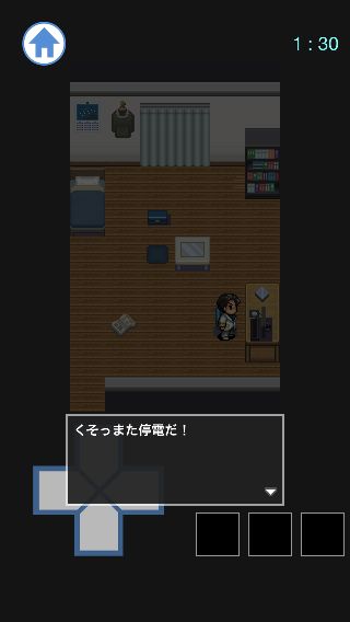脱出ホラー 201号室 無料 2.3 評価する 送信する YoGreenSoft 1:30 上に移動して、「紙」を入手。 「紙」を選択して、机の上のパソコンを調べる。 電気が消えて、メールが鳴る。 下に移動して、携帯電話を調べる。 下に移動して、玄関のブレーカーを調べる。 上に移動して、携帯電話を調べる。 20:00 20:44 21:00 21:44 22:00 22:15 22:30 22:44 23:00 23:44 0:00 0:44 1:00 1:15 1:?? 1:30 2:00 3:00