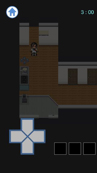 下に2回移動して、キッチンに青いキノコ4本と、白いキノコ1本があるのを確認。