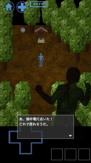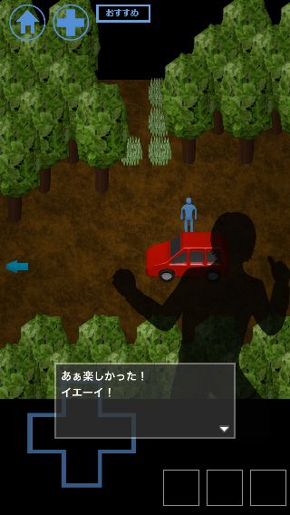 脱出ホラー 首無し地蔵の森 無料 1.9 評価する 送信する YoGreenSoft NORMAL END 2回目の祠を調べずに、「懐中電灯」をつける。 下に移動して、右へ。 車に乗る。 田部健一 BAD END NORMAL END 本田紀子 BAD END NORMAL END 鈴木英太 BAD END NORMAL END 竜崎光 BAD END NORMAL END 岡田真子 BAD END NORMAL END 主人公 BAD END NORMAL END TRUE END その1 TRUE END その2