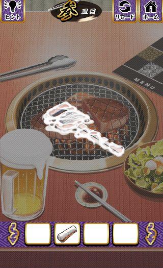 網の上に「肉」を置いて、左のコンロのスイッチへ。