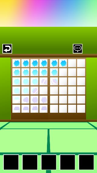 脱出しないゲーム ヒラケゴマ 無料 0 評価する 送信する cocolo-bit Inc. STAGE 11 障子に指で穴を開けていく。 全て穴を開けると開く。 STAGE 1 STAGE 2 STAGE 3 STAGE 4 STAGE 5 STAGE 6 STAGE 7 STAGE 8 STAGE 9 STAGE 10 STAGE 11 STAGE 12 STAGE 13 STAGE 14 STAGE 15 STAGE 16 STAGE 17 STAGE 18 STAGE 19 STAGE 20