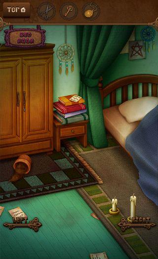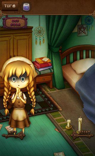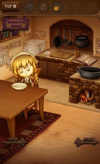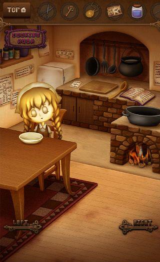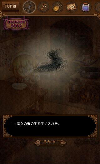 左に移動して、魔女に「ハサミ」を使って「魔女の髪の毛」を入手。
