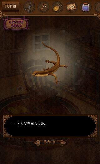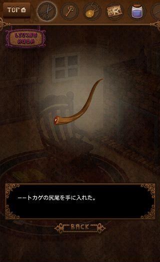 床から「トカゲ」を入手して、「ハサミ」を使って「トカゲの尻尾」を入手。