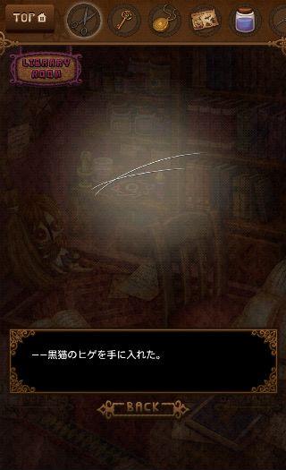 黒猫に「ハサミ」を使って、「黒猫のヒゲ」を入手。