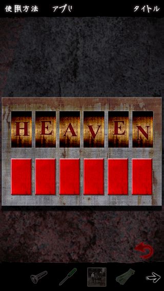 最後の入力装置に『HEAVEN』を入力して、そのままハシゴから脱出する。