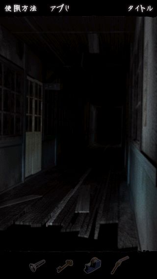 理科室前の右の割れたガラス窓に「ロープ」を使う。