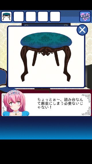 右の扉に「鍵」を使って、「踏み台」を入手。