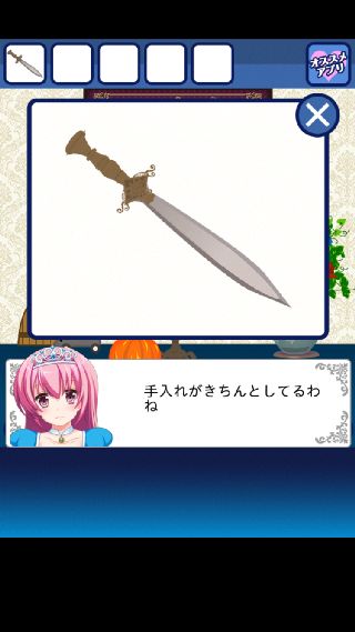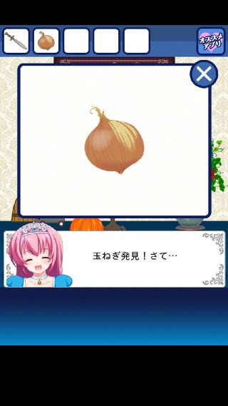 紋章から「剣」、テーブルの上から「玉ねぎ」を入手。
