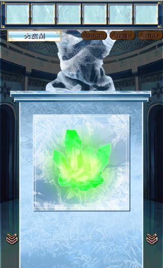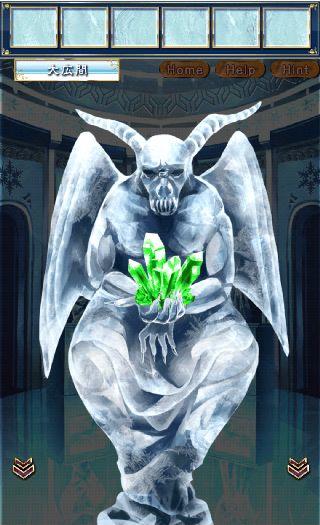 左の悪魔の像を拡大して、持っている水晶を『緑』にする。