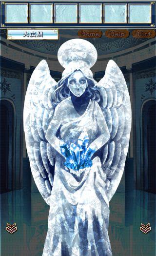 右の天使の像を拡大して、持っている水晶を『青』にする。