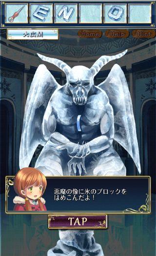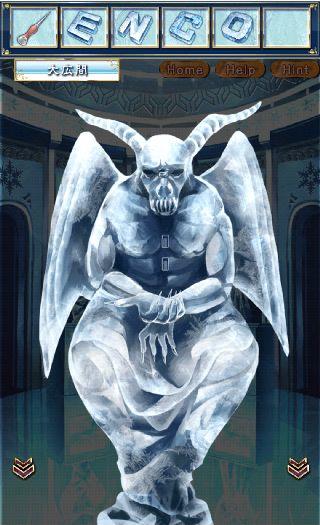 胸元のくぼみに「Iのブロック」をはめて、左の悪魔の像を拡大。