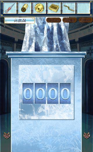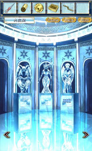 左の氷板の暗号を確認して、大広間に移動。