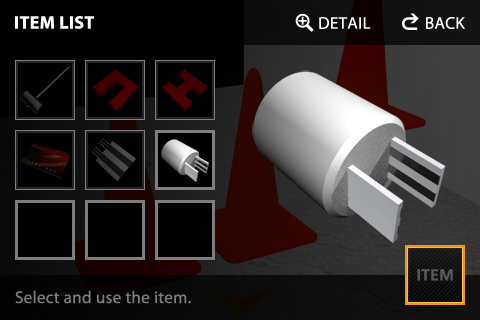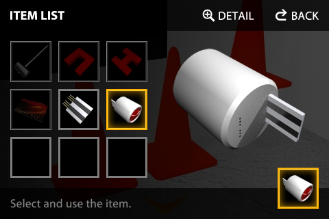 部屋を出て廊下の先の格子の前へ行き、「機械パーツ」を挿し込む。