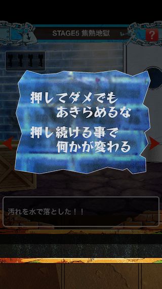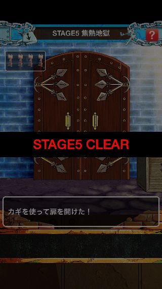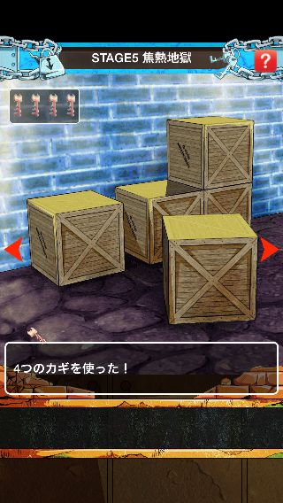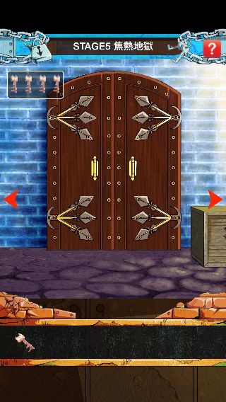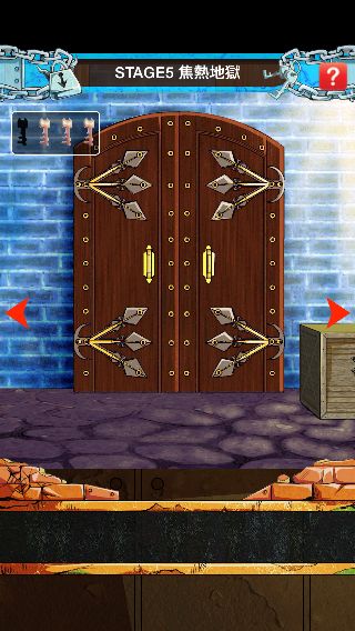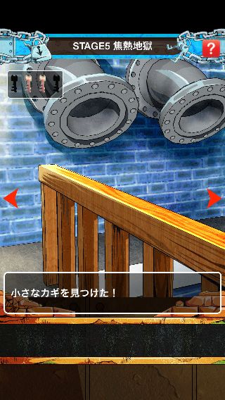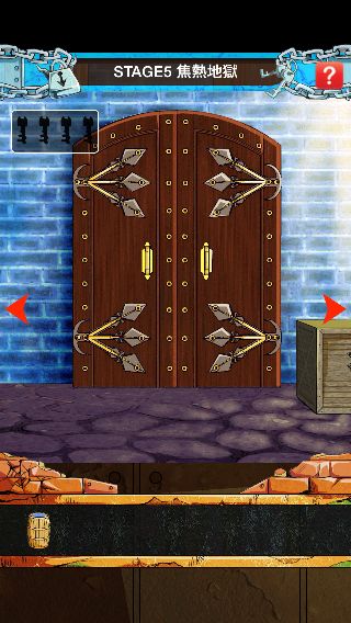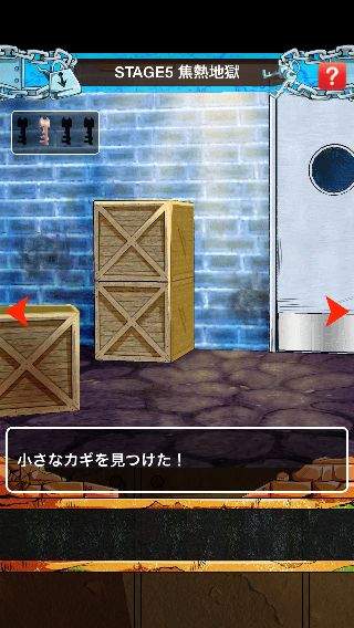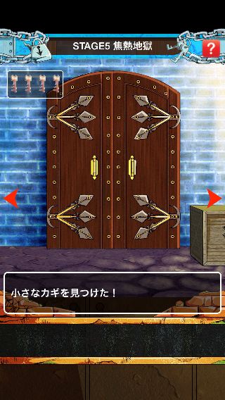 海底監獄インペルダウンからの脱出 無料 0 評価する 送信する STAGE 5 焦熱地獄 右に移動。 中央の壁の汚れを「水入りのタル」で落として、文章を確認。 右の扉の丸い窓を指で長押しして、『小さなカギ』を入手。 右に移動して、左のパイプの中を指で長押しして、『小さなカギ』を入手。 右に移動して、右上の木箱を指で長押しして、『小さなカギ』を入手。 右に移動して、右下の木箱を指で長押しして、『小さなカギ』を入手。 左に移動して、左下の木箱を調べる。 「大きなカギ」を入手して、右に移動。 「大きなカギ」で開ける。 STAGE 1 地上-監獄入口 STAGE 2 紅蓮地獄 STAGE 3 猛獣地獄 STAGE 4 飢餓地獄 STAGE 5 焦熱地獄 STAGE 6 極寒地獄 STAGE 7 Nカマランド STAGE 8 無限地獄