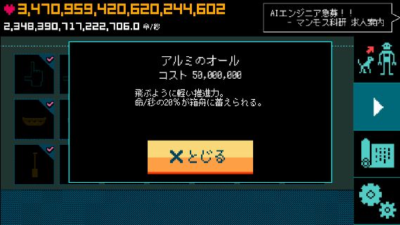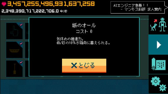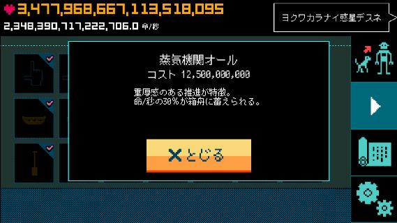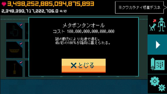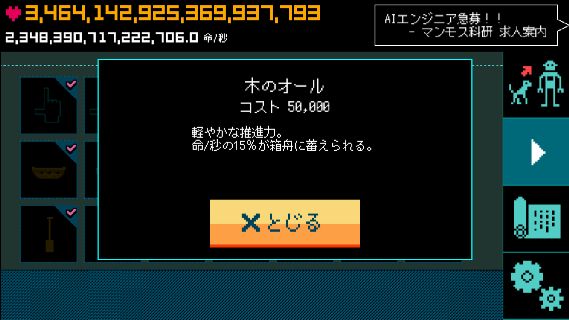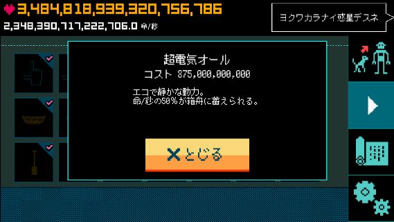 ぼくの惑星~どんど来い!アルマゲドン~ 無料 5.0 評価する 送信する HappyHoppyHappy Co.,Ltd. オール 紙のオール 木のオール アルミのオール 蒸気機関オール 超電気オール 水素燃料オール メタポンタンオール 文明一覧 ライフタップ 箱舟 オール 生命体増加率アップ ゾウリムシ誕生スピードアップ アンモナイト誕生スピードアップ 恐竜誕生スピードアップ 始祖鳥誕生スピードアップ マンモス誕生スピードアップ ホモ・サピエンス誕生スピードアップ 石油誕生スピードアップ 電気誕生スピードアップ ロケット誕生スピードアップ 宇宙ステーション誕生スピードアップ アンドロイド誕生スピードアップ 超人類誕生スピードアップ アルマゲドン 達成項目一覧 惑星レベルアップ 最初の進化 進化の引き継ぎ アルマゲドン タップ・UFO・箱舟 拓けた文明 突然変異種 その他実績