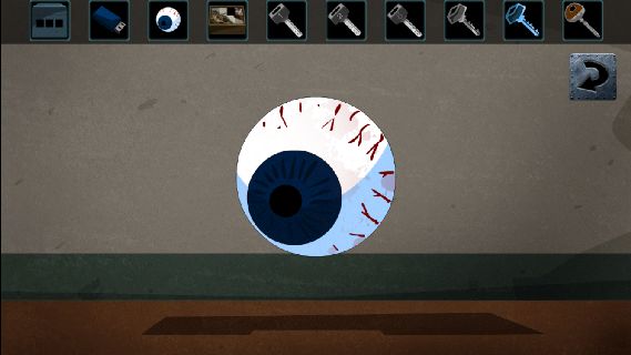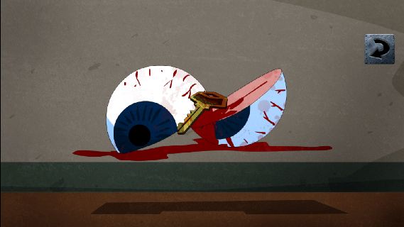 「目玉」に「ナイフ」を使って、「金色のカギ」を入手。