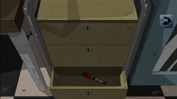 一番下の引き出しを「赤いカギ」で開けて、「ドライバー」を入手。