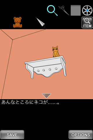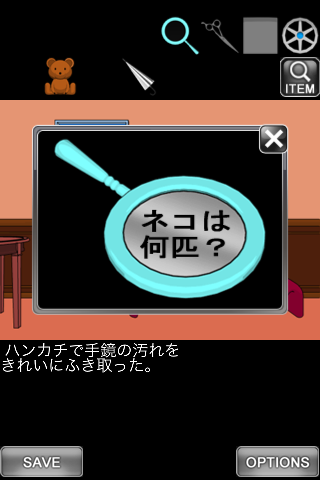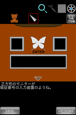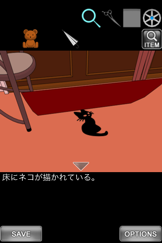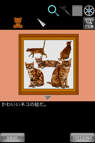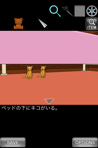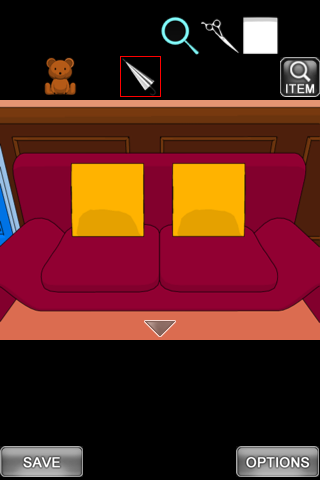 最初の画面に戻り、右のクッションを調べる。