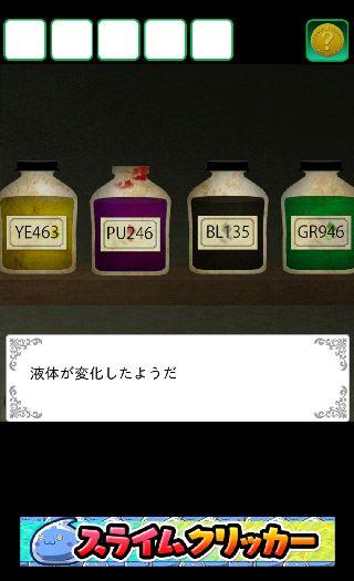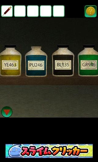 瓶の書かれた数字の汚れている部分を1~4の順に見ていくと、『黒紫黄緑』となる。