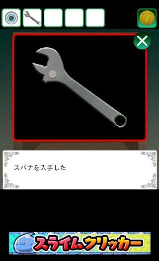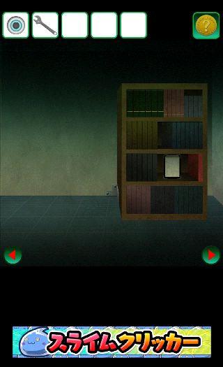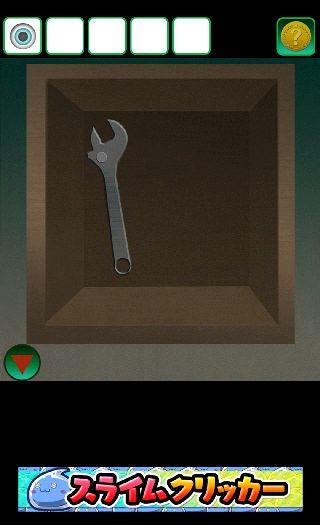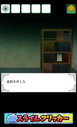 「スパナ」で本棚の左下の金具を外して、本棚の中央のボタンを拡大。