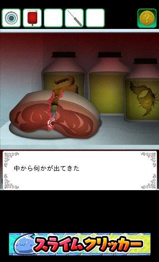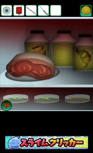 冷蔵庫を開けて、肉に「メス」を使う。