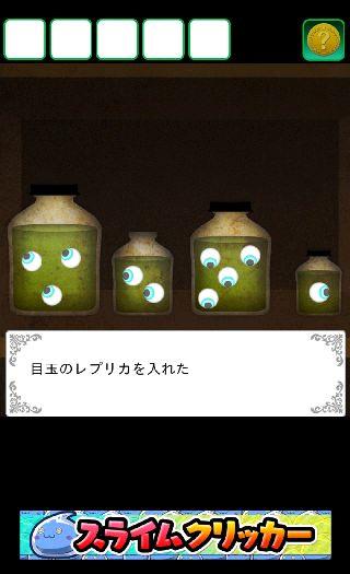 左から2番目の瓶に、2つの「目玉のレプリカ」を入れる。