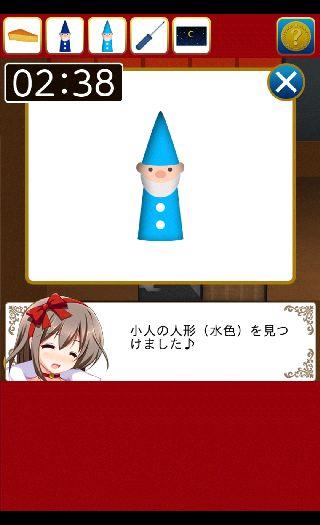 「小人の人形(青色)」を入手して、前の部屋のテーブルの前へ。