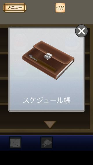 「スケジュール帳」に「カギ」を使って、中身を読んでクリア。