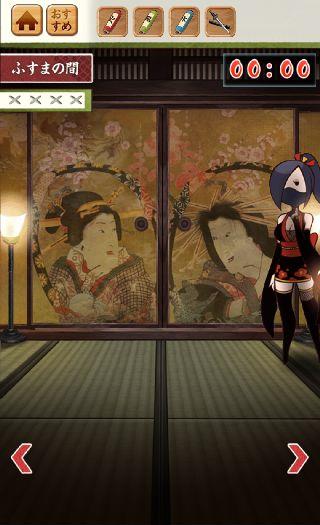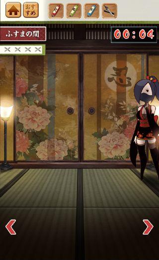 最初は左のふすまの中央の花が変わる。