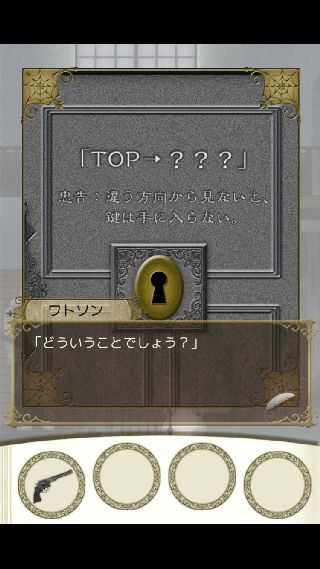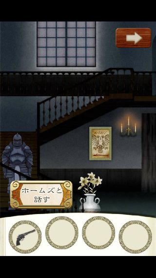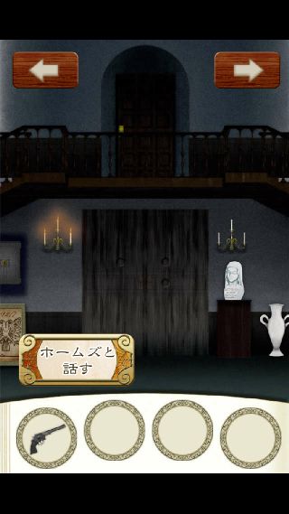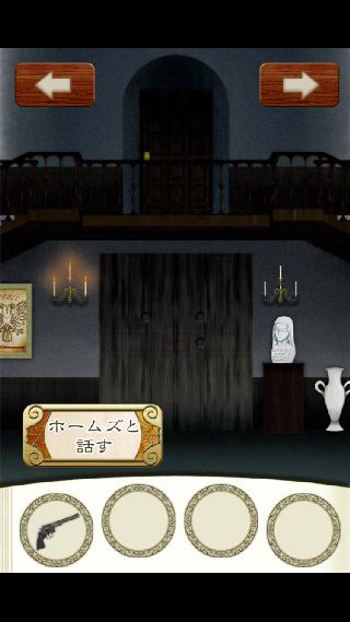 脱出ゲーム『VAMPIRE HOLMES』 無料 0 評価する 送信する CUCURI Co., Ltd. Stage 4 左に移動。 絵を調べて、『3』を選択する。 絵の後ろの暗号を確認。 『???=POT』となる。 右に移動して、壺を調べて「鍵」を入手。 左に移動して、金庫に「鍵」を使ってボタンを押す。 敵を「銃」で撃退してクリア。 Stage 1 Stage 2 Stage 3 Stage 4 Stage 5 Stage 6 Stage 7 Stage 8 Stage 9 Stage 10 Stage 11 Stage 12 Stage 13 Stage 14 Stage 15 Stage 16 その1 Stage 16 その2 Stage 16 その3