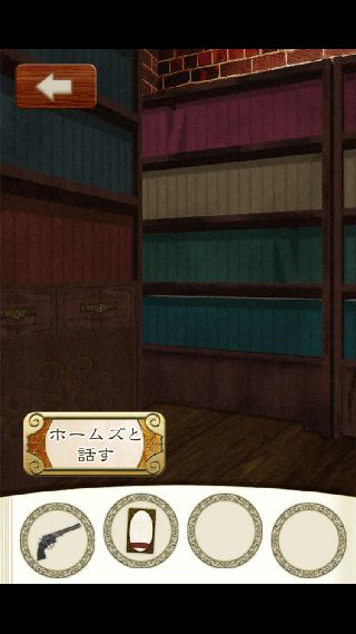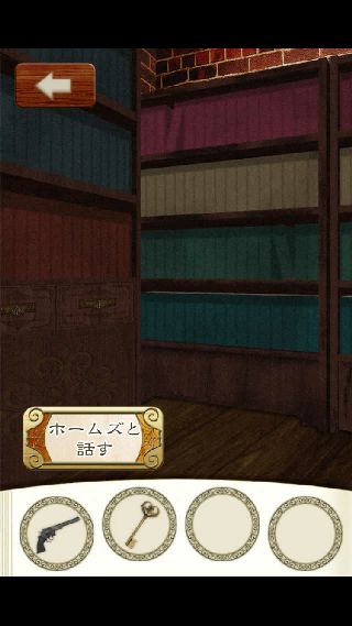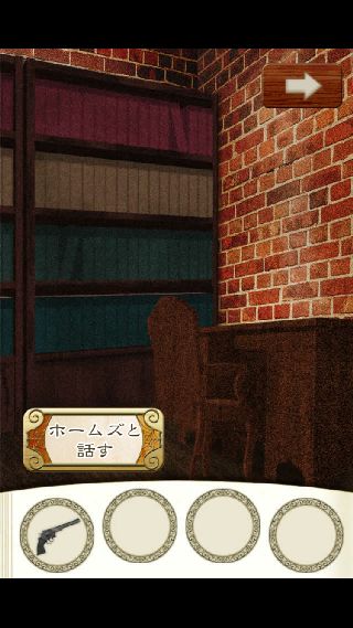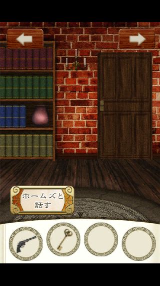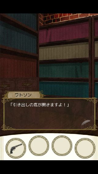左の本棚の引き出しを「鍵」で開けて、暗号を確認。