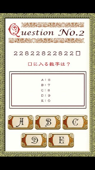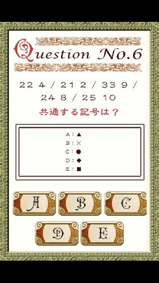 6問目は左2つの数字を掛けると右の数字になるので、『B:×』が正解。