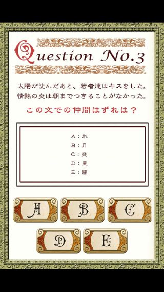 3問目は文章に関係ない文字、『A:氷』が正解。