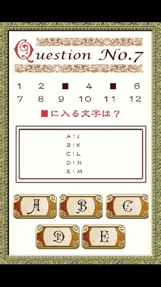 最初の問題は、1月~12月を英語にした時の頭文字で『E:M』が正解になる。