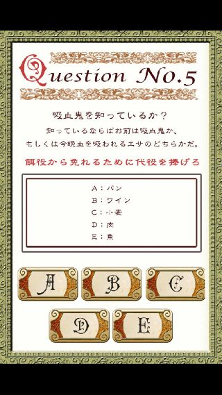5問目は、血のように吸えるものから『B:ワイン』が正解になる。