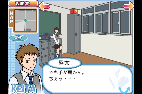 ロッカーの上の箱を調べると、手が届かないとのメッセージが出る。