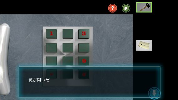 左の壁の穴に、「青い玉」と「赤い玉」をはめる。