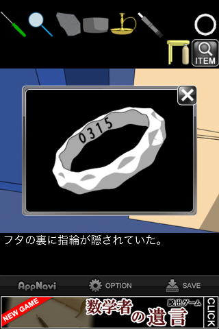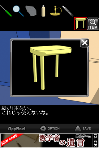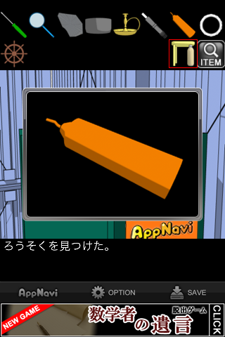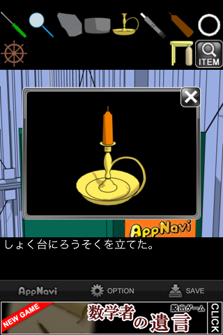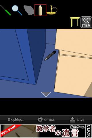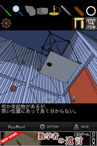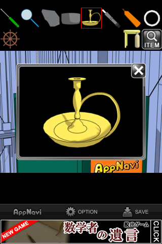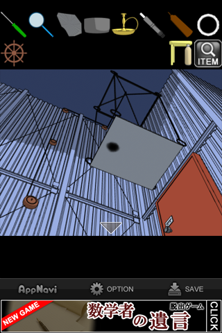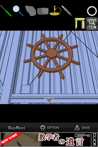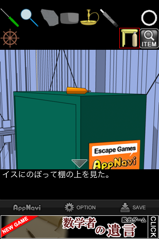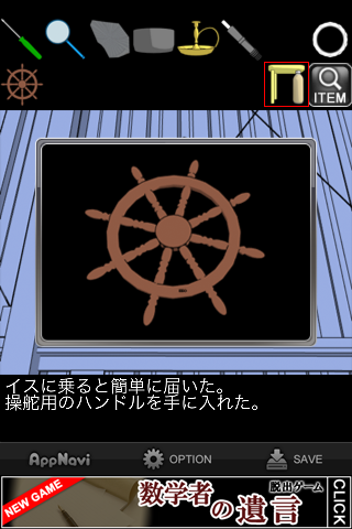 「イス」を使って、壁に掛かっている「ハンドル」を入手。