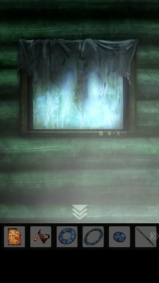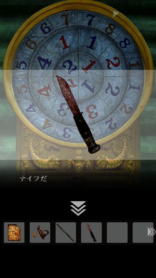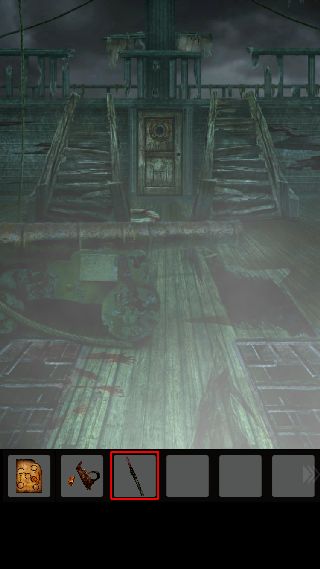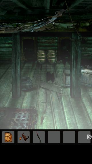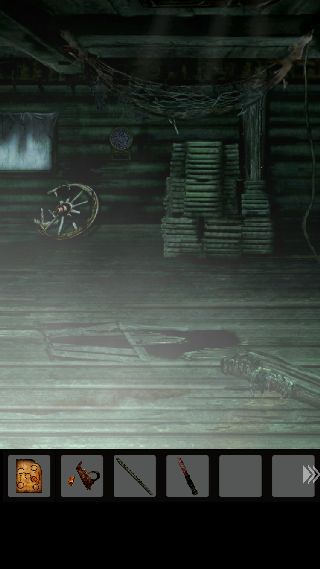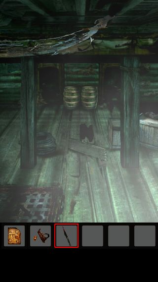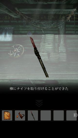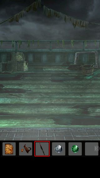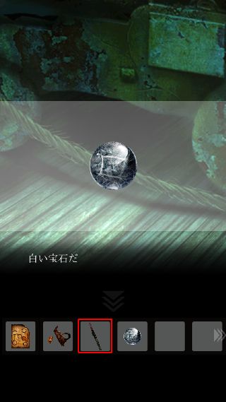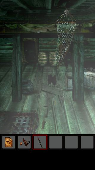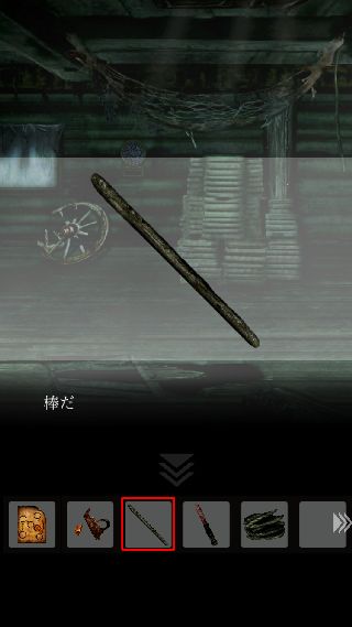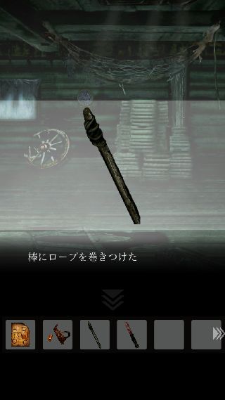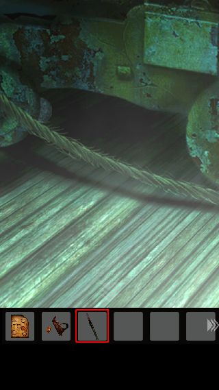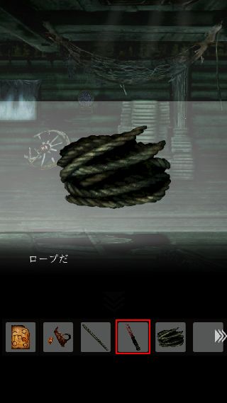 手前に戻って、右上に「ナイフ」を使って「ロープ」を入手。