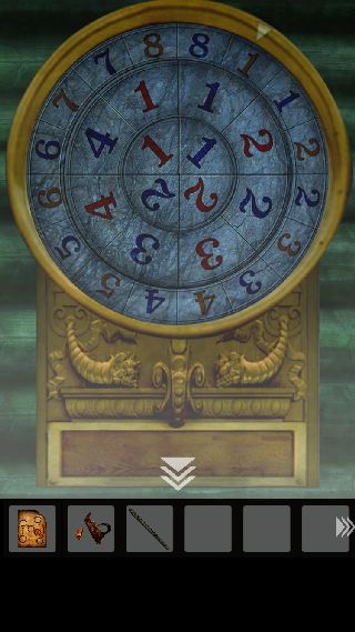 右上の▽に合うように、『外の円盤:赤8、中の円盤:青1、内の円盤:赤1』に合わせる。