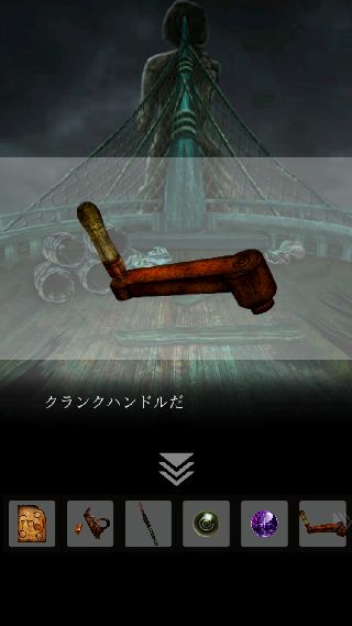 船に乗り込んで、「クランクハンドル」を取り付けて脱出!