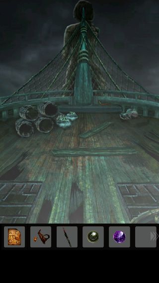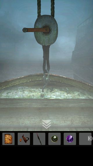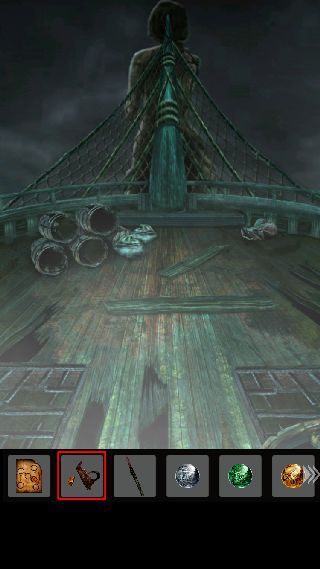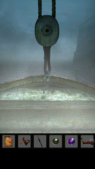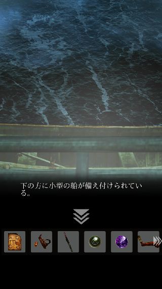 右に移動して、奥にある小型の船を調べる。