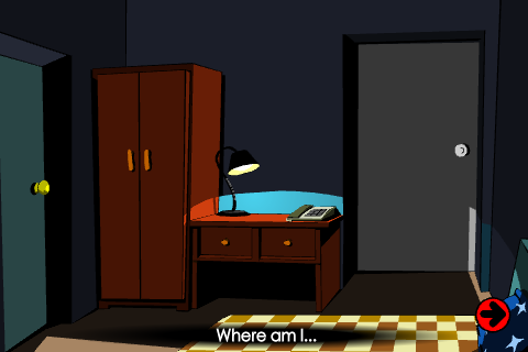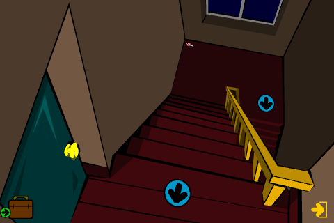 左の扉に入って、窓枠から「青いカギ」を入手。