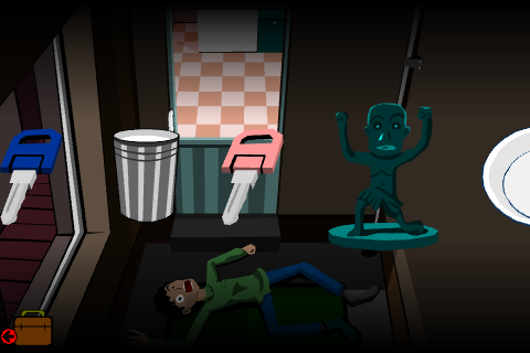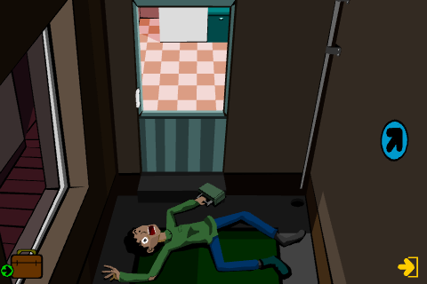 左の扉に入ると男が倒れていて、カバンから所持品を全て回収する。